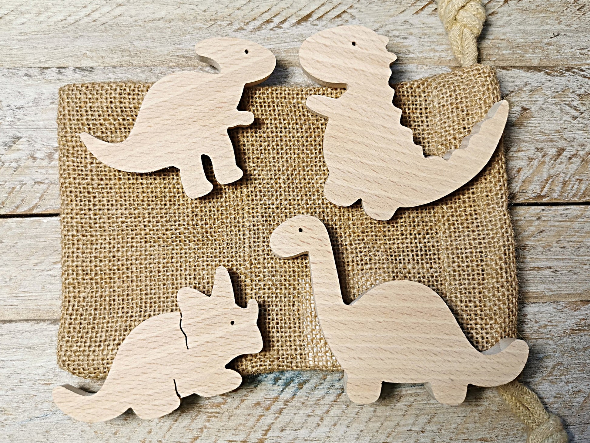 Ensemble de 4 magnets en bois contient des formes dinosaures. La taille de chaque magnet est d'environ 6cm x 6cm.